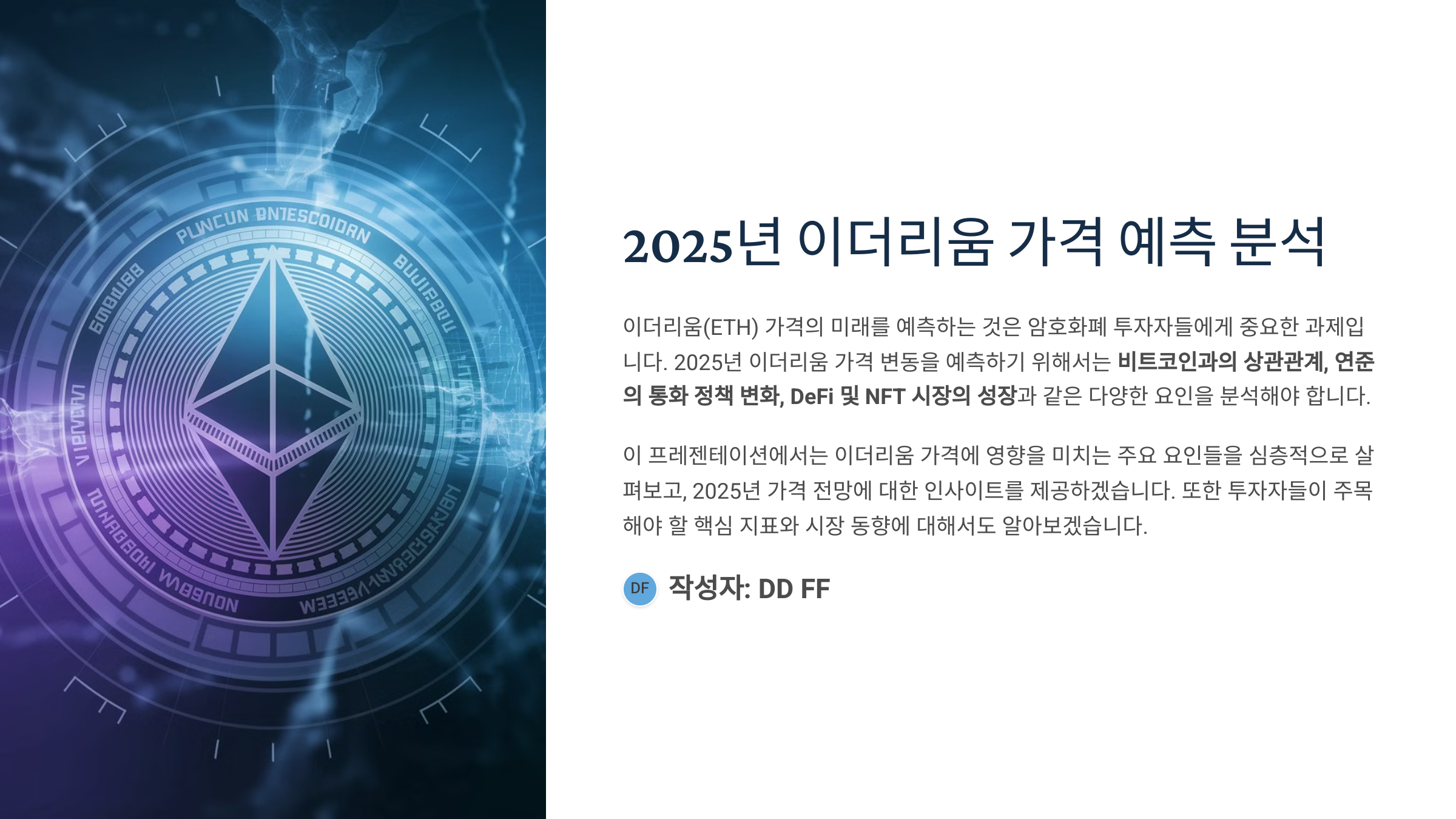 이더리움 가격 예측: 2025년 ETH 가격 전망과 투자 전략 분석. 비트코인, 연준 정책, DeFi와 NFT 시장 성장이 이더리움 가격에 미치는 영향 분석. 메타설명에 이더리움 가격 예측을 포함하여 SEO 최적